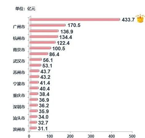 榜单总额同比微降,榜单水平分化较为明显,二线城市入榜 16席为主力,上海揽金近434 亿领跑。