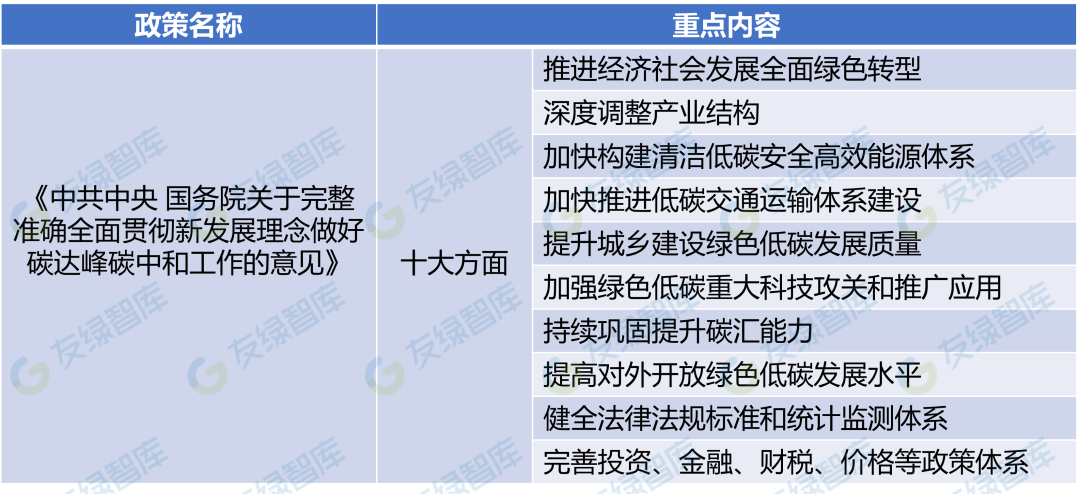 友绿智库重点梳理了中央层面出台的政策,后续如有变化再进行更新,并将加入部分地方代表性政策。