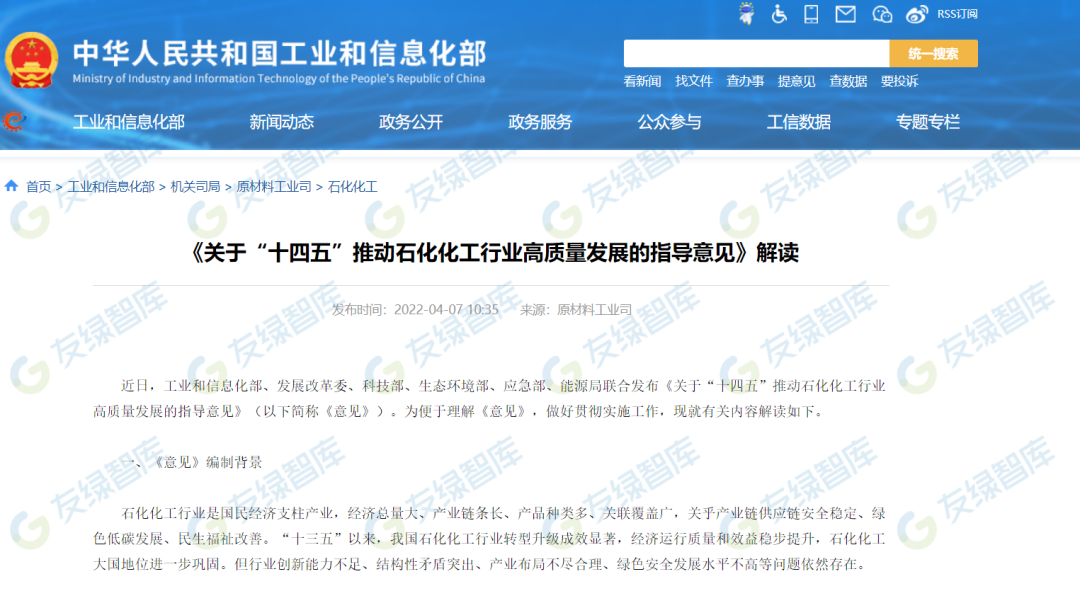 2022年3月28日《关于“十四五”推动石化化工行业高质量发展的指导意见》