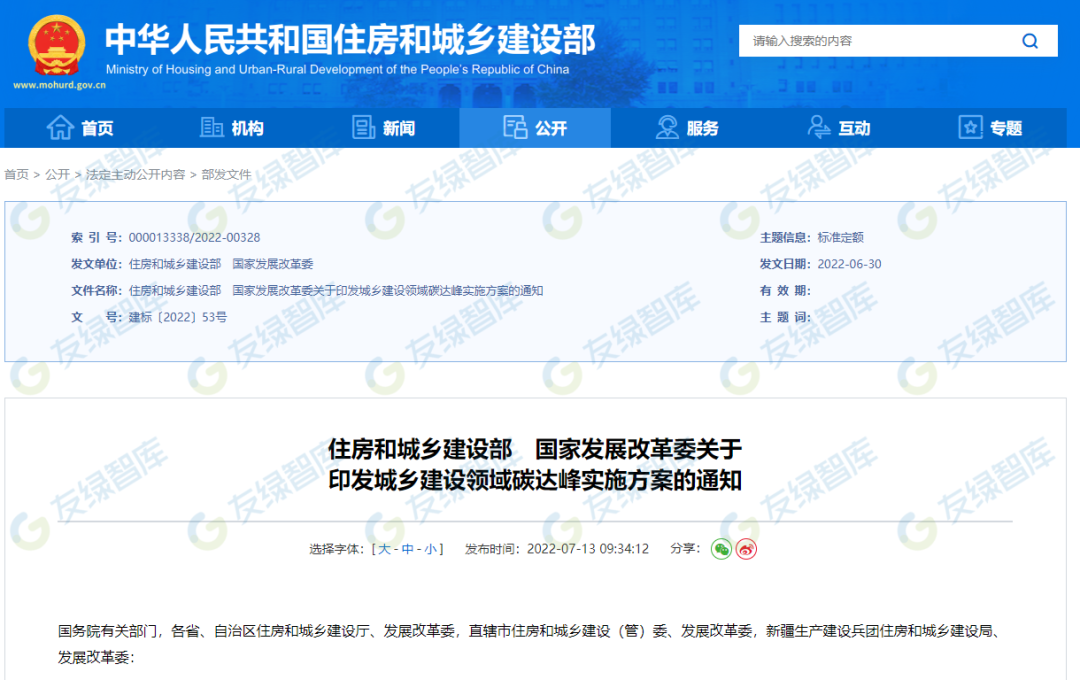 2022年7月13日《城乡建设领域碳达峰实施方案》