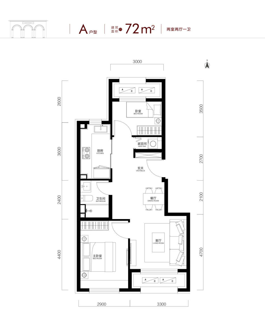 这个72平米的两居,南北通透,每个房间都做到了舒适尺度,景观飘窗,还有小户型里不常见的宽大明厨,足够两人同时下厨。