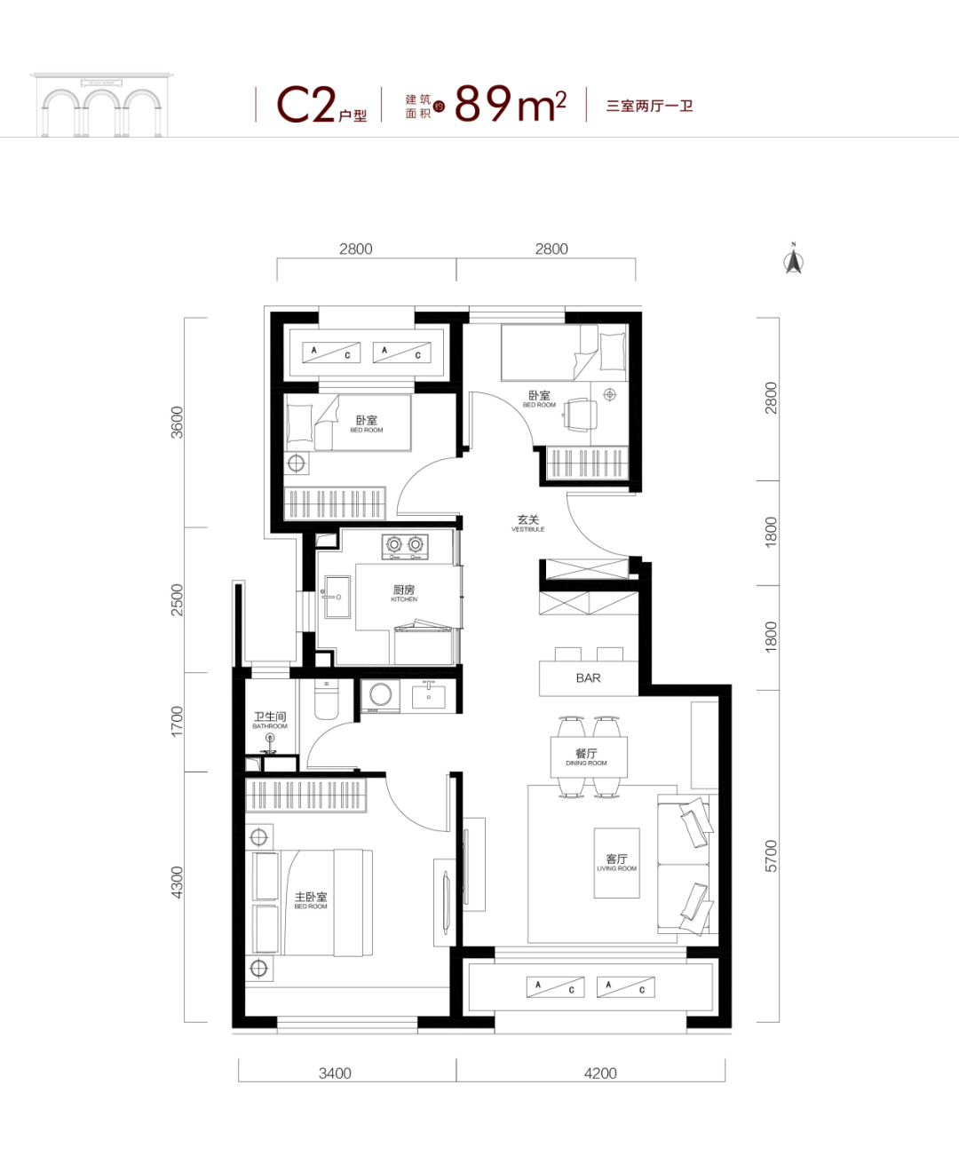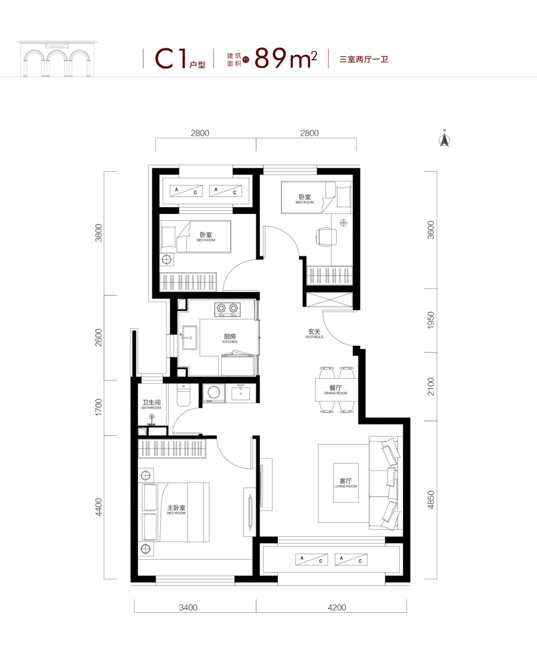 两个89平米的三居户型,除了全明格局设计,每个房间尺度更舒适以外,最大的亮点是4.2米的宽厅、3.4米的主卧面宽,这是在这个面积段户型很少见的尺度。另外,四分离的卫生间,方便家庭成员在不同功能空间同时使用。