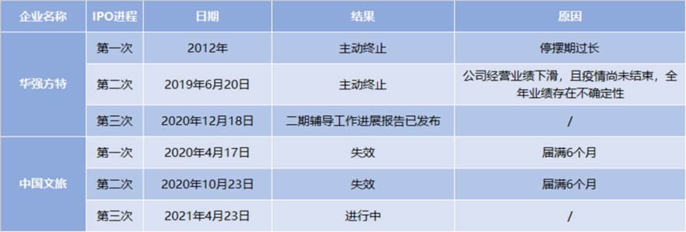 2012年,华强方特首次启动A股上市计划,由于漫长的停摆期在两年后主动终止;2019年,华强方特再度提请IPO,由于疫情造成业绩的不确定性,IPO申请再次以主动终止收场;2020年底,华强方特递交上市辅导材料。