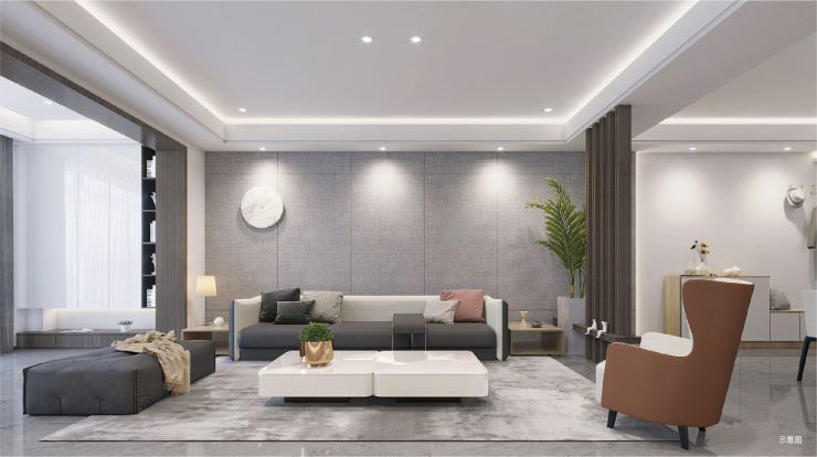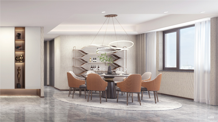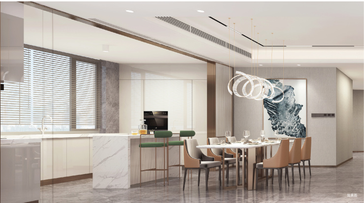 客餐厨巧妙互通的结构性布局,形成了开敞式LDK空间。当光、风、影在此共生流淌,目之所及皆自带广角,这里不仅增加了更多元的互动功能,更延伸了生活的无限可能。置身于豪阔横厅,接待亲友尽显阔绰大气,巨幕视野更显雍容风范,谈笑间会晤时代的波澜壮阔。