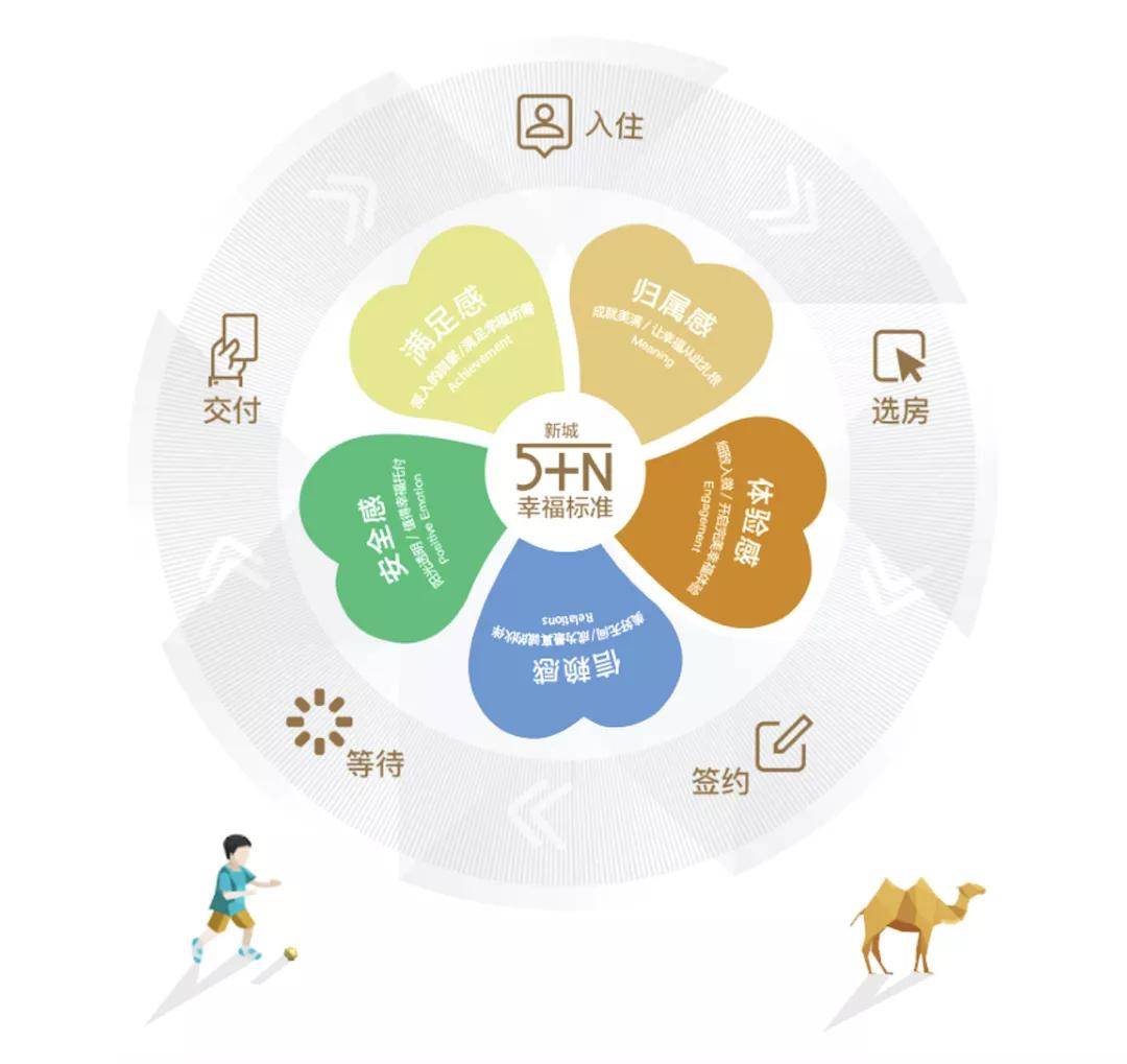 好的生活,根植于好的服务之中。新城围绕客户幸福生活所需的满足感、安全感、信赖感、体验感、归属感五大维度,贯穿选房、签约、等待、交付和入住五个场景阶段,升级打造包含60项服务动作的全周期服务标准——5+N幸福标准。