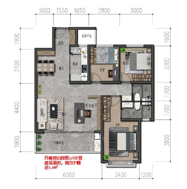 具体就126㎡的户型来看,三室两厅两卫设计,户型整体没有浪费面积,可以满足未来的生活居住的各种需求,同时又占据价格优势,总价低,面积大,功能性强,不论是二人世界、一家三口还是三代同堂,生活既独立又和谐。