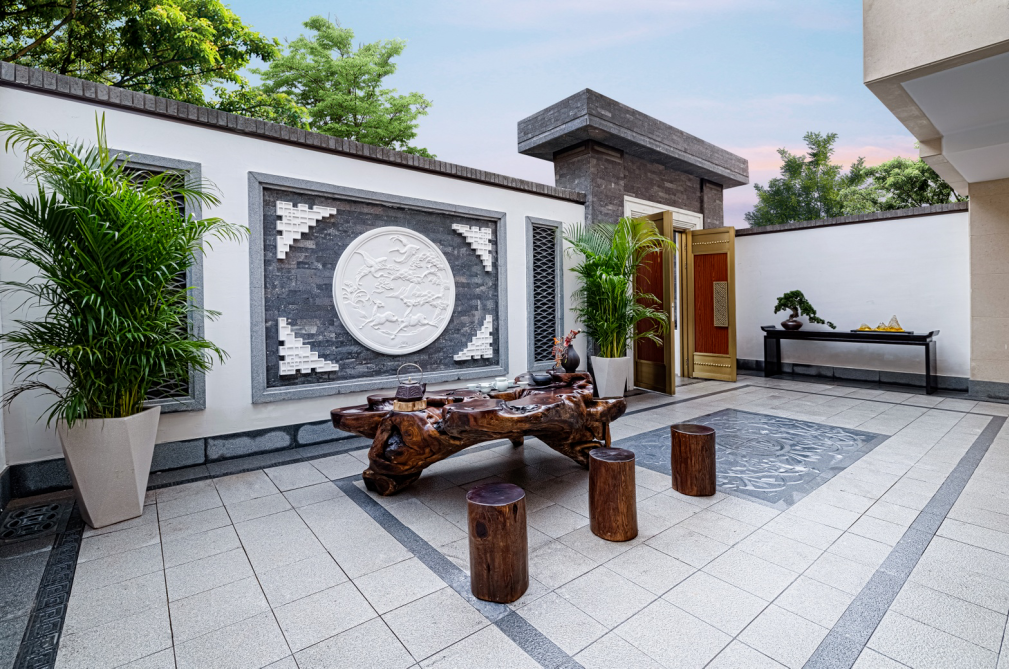 中国人的生活讲究亲地性,泰禾在设计院子时以硬铺为主,选用竹子、高杆植物等点缀其中,把人活动的空间从三维上释放出来。通过这样的设计手法,庭院在视觉上和实际使用中都显得更大更完整,即可观赏,又可玩味,带给业主带来更富有弹性和想象力的生活方式。