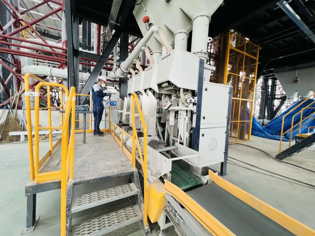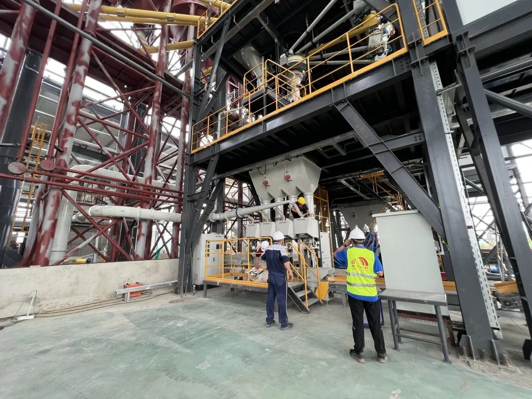 自动化生产线上一包包特种砂浆顺利包装下线,标志着公司首条年产10万吨的砂浆自动化生产线试车取得圆满成功。