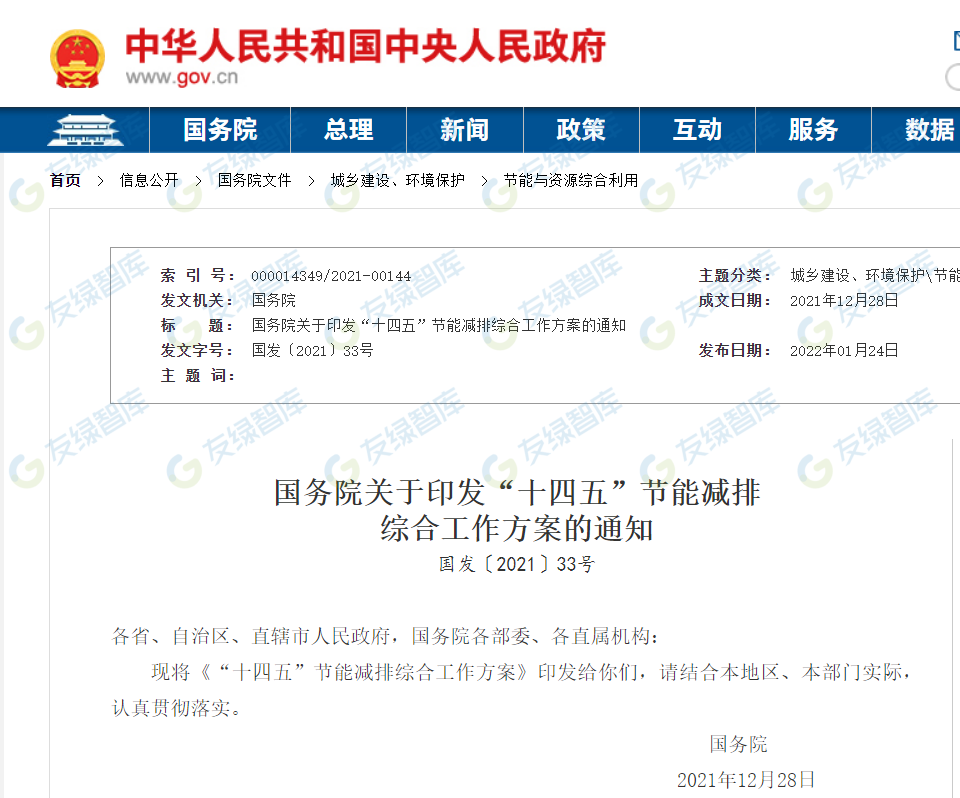 2022年1月24日《“十四五”节能减排综合工作方案》