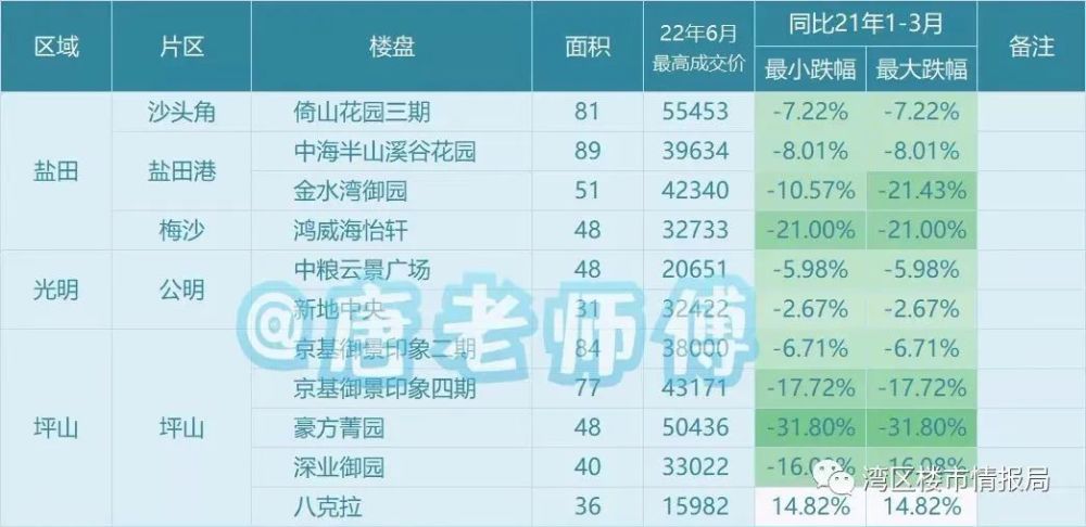 总结:深圳楼市调整1年半,价格上来看,只是调整了一个寂寞,区域跌幅竟然都低于深圳楼市整体24%的跌幅,那整体数据何来?虽然光明、宝安区域交易量很少,但也一定程度反应出了两地的楼市温度。