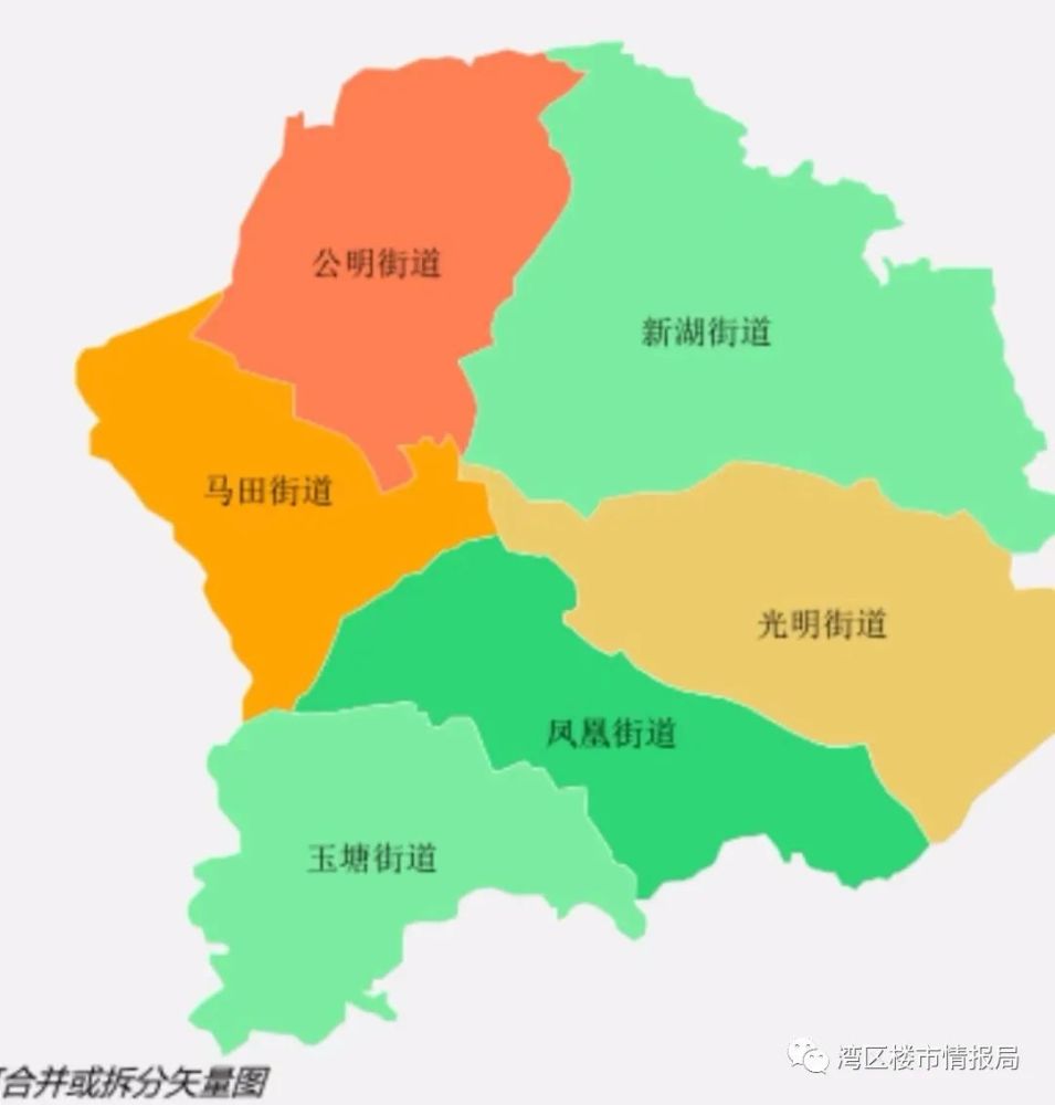 研究光明的地图可看出:光明街道、凤凰街道为中心价值区,向四周发散。