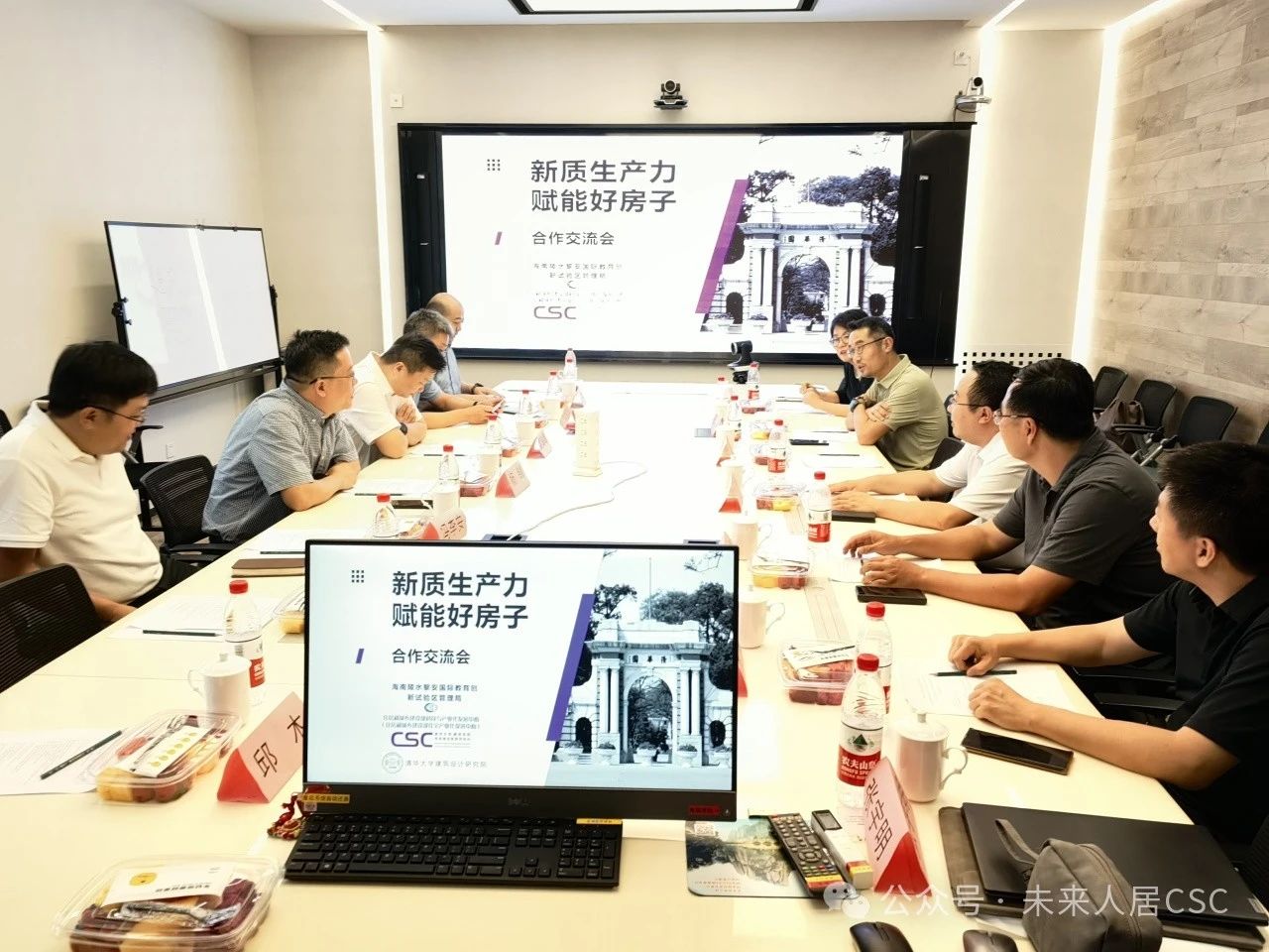 北京,2024年8月23日 - 海南省陵水县委书记、海南陵水黎安国际教育创新试验区管理局党委书记、局长吴海峰一行访问了清华大学建筑学院,与清华大学校建筑学院可持续住区研究中心(简称CSC)主任孔鹏、住房和城乡建设部科技与产业化发展中心处长梁浩、清华大学建筑设计研究院文旅分院院长汪震铭,北京清筑人居城市更新有限公司董事长万庆云共同探讨了新质生产力赋能“好房子”的相关议题,并就下一步合作展开积极讨论。