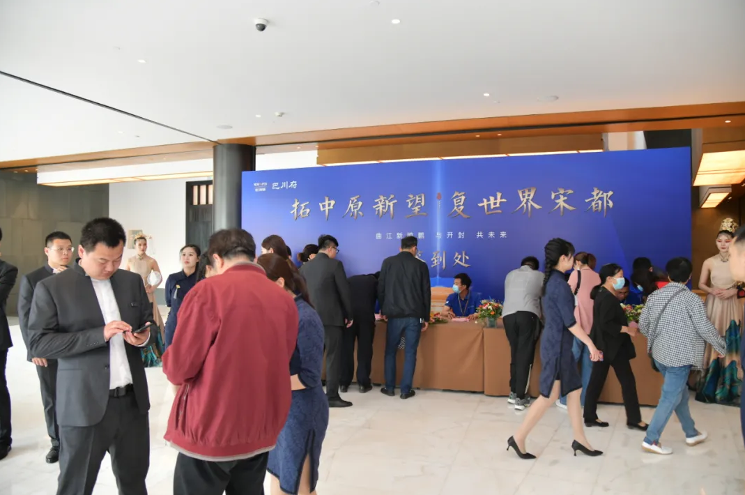 下午两点,嘉宾、媒体大咖以及百余位行业代表陆续入场。曲江新鸥鹏•巴川府工作人员,以礼相迎,签到嘉宾秩序落座,静待发布会仪式开始。