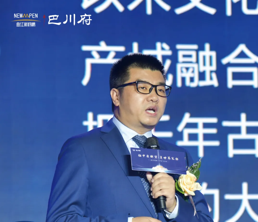 最后,曲江新鸥鹏文化教育控股集团河南公司营销副总经理吴磊先生,带领来宾共同了解新鸥鹏教育城巴川府价值体系,从“中国教育家”到“中国教育+”,围绕“城市更新、城市再造、城市升级”三个主题,从“文化表达、内容迭代、经济发展”三个维度出发,与来宾共同探讨城市发展新模式!