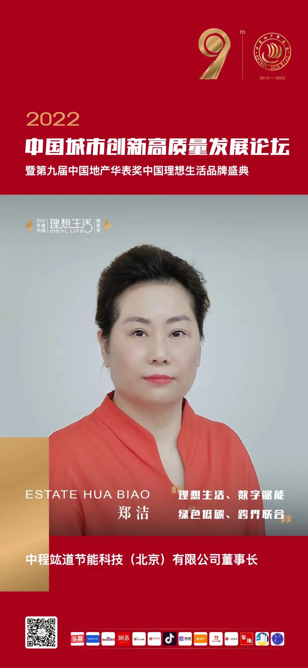 中程竑道节能科技(北京)有限公司董事长郑洁近期在接受中国地产华表奖、中...