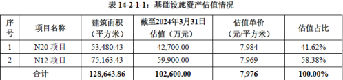 根据戴德梁行出具的《估价报告》,截至2024年3月31日,两个北京经开区基础设施资产估值合计10.26亿元,其中N20项目估值为4.27亿元,N12项目估值为5.99亿元。